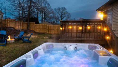 NEW! Updated Mystic Home w/ Sauna, Hot Tub & Deck oferece uma variedade de comodidades de bem-estar, incluindo sauna e banheira de hidromassagem.