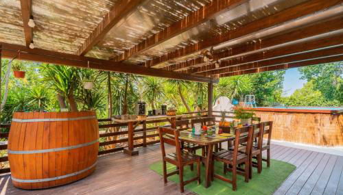 Os hóspedes podem relaxar no jardim do alojamento.