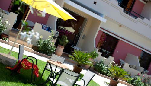Providenciando vista do jardim em Kato Daratso, Nikolas Suites dispõe de acomodações, uma piscina exterior sazonal, um jardim, um salão partilhado, um terraço e um bar. O acesso Wi-Fi gratuito é disponibilizado em toda a propriedade.