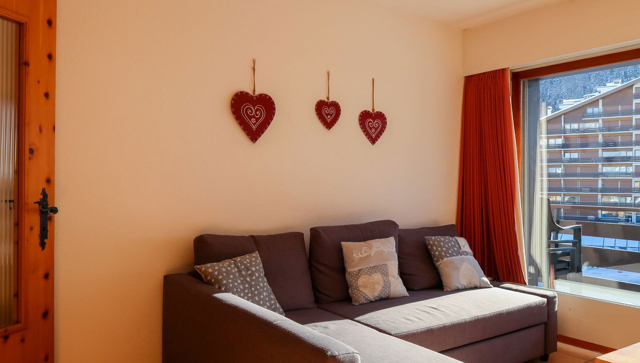 "Christiania 2 C8", apartamento de 2 assoalhadas 45 m2 no 8° andar. Casa adequada para 2 adultos + 2 crianças. Com mobiliário funcional: hall de entrada com 1 x 2 beliches (80 cm, 190 cm de comprimento). Sala de estar/ sala de jantar com lareira (apenas para decoração), TV a cabo, rádio e CD, saída à varanda. 1 quarto com 2 camas (90 cm, 190 cm de comprimento), saída à varanda. Cozinha (forno, 4 placas de vitrocerâmica, conjunto de Fondue (conjunto de Fondue)). Banheira/WC, WC separado. Varanda, sentido sul. Vista à pista de esqui e ao povoado. A moradia dispõe de: Internet (Sem fio/ Wireless LAN [WLAN], grátis). Por favor, a ter em conta: apartamento para não fumadores, sem estacionamento. Permitido no máximo 1 animal de estimação/ cão. Em vez de um quarto fechado, algum do mobiliário para dormir está localizado num espaço em plano aberto (galeria, alcova, etc.).