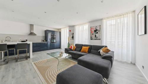 Este apartamento dispõe de 1 quarto, uma cozinha com frigorífico e máquina de lavar louça, uma máquina de lavar roupa e 2 casas de banho com produtos de higiene pessoal gratuitos e um secador de cabelo. Toalhas e roupa de cama são providenciadas neste apartamento.