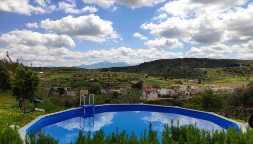 Apresentando uma piscina exterior, um jardim e um salão partilhado, Green Farm-small paradise! apresenta acomodações em Kalloní com acesso Wi-Fi gratuito e vista da montanha.
