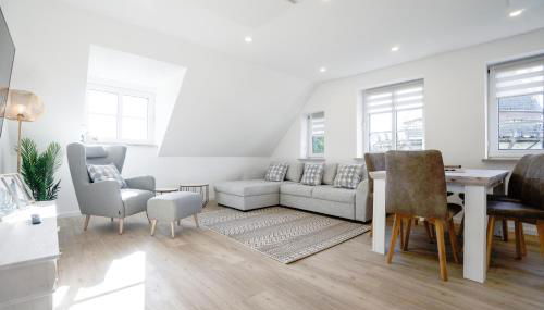 Sonnenglück - Helle und moderne Ferienwohnung am Meer encontra-se em Nordstrand, a 4 minutos a pé de Süderhafen e 16 km de Husumhus, e providencia acomodações com acesso Wi-Fi gratuito e uma televisão de ecrã plano. Situado a 21 km de Husum North Sea Convention Centre, o alojamento apresenta um jardim e estacionamento privado gratuito.