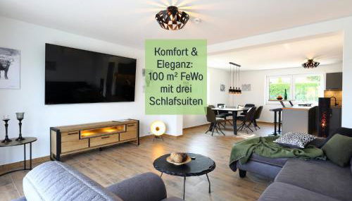 Ferienhaus Höckelheim - Savanna Lodge - barrierefrei - 3 Schlafzimmer-bis 6 Gäste - nahe Göttingen - 100 qm - Babies reisen gratis - Terrasse, Garten & Grill - vollausgestattete Küche mit Spülmaschine - Klimaanlage, Fußbodenheizung & Raffstores