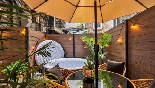 Apresentando vista da cidade, Modern West Village 1BR Garden steps to subway dispõe de acomodações com um jardim e pátio, a cerca de menos de 1 km de Universidade de Nova Iorque - NYU.