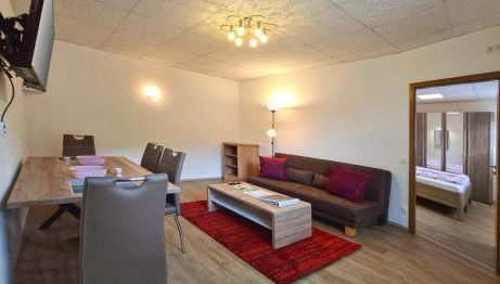 Este apartamento dispõe de 1 quarto, uma televisão de ecrã plano por satélite, uma área de refeições, uma cozinha com frigorífico e uma sala de estar.
