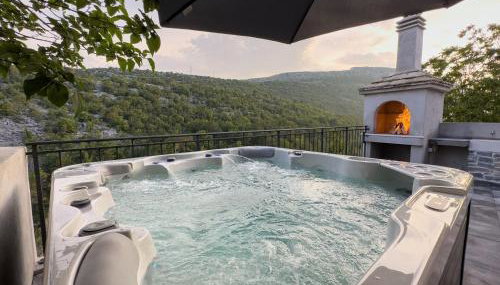 Apresentando vista da montanha, Holiday Home Vrkic with Hot Tub apresenta acomodações com um terraço e varanda, a cerca de 22 km de Parque Arqueológico de Salona. O alojamento fornece acomodações, um pátio e acesso Wi-Fi gratuito.