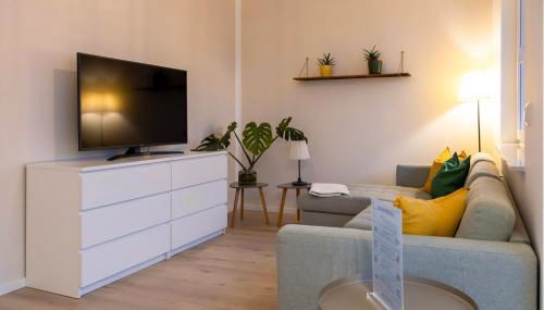 Este apartamento inclui 1 quarto, cozinha com um frigorífico e uma máquina de lavar louça, uma televisão de ecrã plano, uma área de estar e 1 casa de banho com chuveiro. Toalhas e roupa de cama são providenciadas neste apartamento.