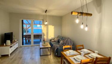Em Orchowo, apenas a 42 km de Estação Ferroviária, SielAnka Domek letniskowy całoroczny dispõe de acomodações em frente à praia com um jardim, uma área de praia privada, um terraço e acesso Wi-Fi gratuito.