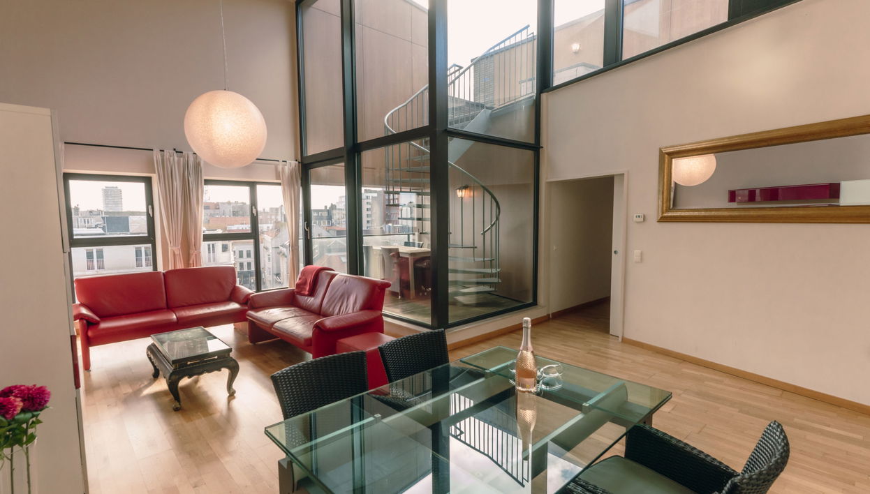 "Rooftop Breeze", apartamento de 3 assoalhadas 100 m2 em 2 andares no 5° andar. Luminoso, com mobiliário confortável: hall de entrada com WC separado e calefação a gás.