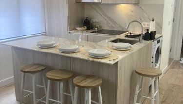 Este apartamento tem 2 quartos, uma sala de estar, uma cozinha totalmente equipada com frigorífico e máquina de café, e 1 casa de banho com chuveiro e produtos de higiene pessoal gratuitos. Toalhas e roupa de cama são providenciadas neste apartamento.