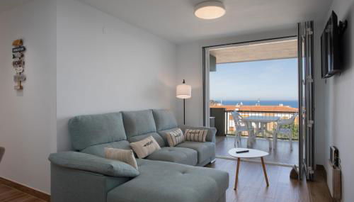Apresentando vista da montanha, Apartament gran amb vistes al mar, piscina i pàrquing fornece acomodações com varanda e máquina de café, a cerca de 4 minutos a pé de Praia de Sant Roc.