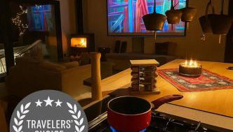 Este chalé com um terraço e vista da montanha apresenta 2 quartos, uma sala de estar, uma televisão de ecrã plano, uma cozinha equipada com frigorífico e máquina de lavar louça, e 2 casas de banho com chuveiro. Toalhas e roupa de cama são providenciadas neste chalé.
