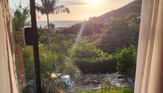 Disponibilizando um jardim e vista do jardim, Apartamento aconchegante e confortável localiza-se em Garopaba, a 14 km de Terminal Rodoviário de Garopaba e 10 km de Dunas do Siriú.
