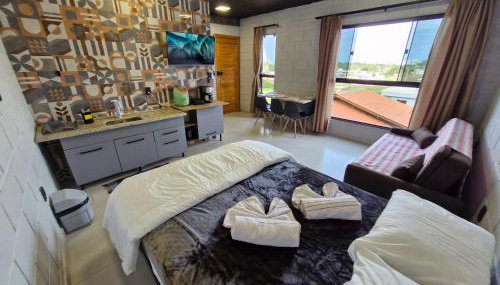 Em Penha, apenas a 1,9 km de Alegre Beach, Edifício Aurora 05 Loft Mary apresenta acomodações em frente à praia com um jardim, uma área de praia privada, um terraço e acesso Wi-Fi gratuito. O alojamento está a 7,8 km de Beto Carrero World e 8,7 km de Fishing and Tironi Park.