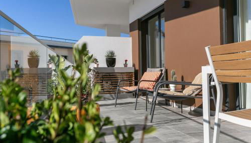 Este apartamento com ar condicionado tem 2 quartos, uma sala de estar, uma kitchenette totalmente equipada com frigorífico e máquina de café, e 2 casas de banho com chuveiro e um secador de cabelo. Toalhas e roupa de cama são providenciadas neste apartamento.