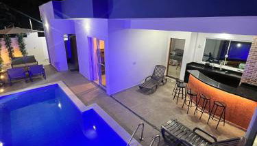 Apenas a 20 km de Terminal Rodoviário de Itanhaem, Casa com piscina, 700M da praia dispõe de acomodações em Peruíbe com uma piscina exterior, comodidades para churrascos e uma receção aberta 24 horas. O alojamento com ar condicionado está a 9 minutos a pé de Beach Parque Balneário Oasis, e os hóspedes beneficiam de acesso Wi-Fi gratuito e estacionamento privado disponível no local.