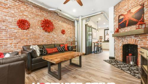 Em Pittsburgh, a 3,7 km de Universidade de Pittsburgh e 4,2 km de Universidade de Carnegie Mellon, HostWise Stays - Prime Location in Lawrenceville, Exposed Brick 2BR Home fornece acomodações com acesso Wi-Fi gratuito, ar condicionado e um jardim.