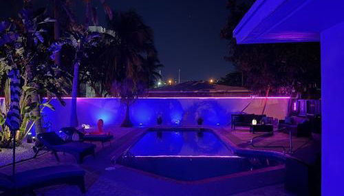 Apresentando uma piscina exterior, um jardim e um terraço, Azure Dreams House Heated Pool Modern Design apresenta acomodações em Pompano Beach com acesso Wi-Fi gratuito e vista da piscina.