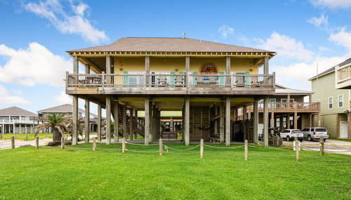 Em Bolivar Peninsula, apenas a alguns passos de Crystal Beach, BEACHFRONT with DECK Hot Tub and View and Cargo Lift Sleeps 14 apresenta acomodações em frente à praia com um jardim e acesso Wi-Fi gratuito. Apresentando estacionamento privado gratuito, esta casa de férias está numa área onde os hóspedes podem desfrutar de atividades como pesca e ciclismo.