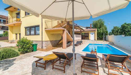 Apresentando vista da piscina, Villa Maredi with pool apresenta acomodações com varanda e chaleira, a cerca de 4,4 km de Anfiteatro de Pula. O alojamento tem uma piscina privada, jardim, comodidades para churrascos, acesso Wi-Fi gratuito e estacionamento privado gratuito.
