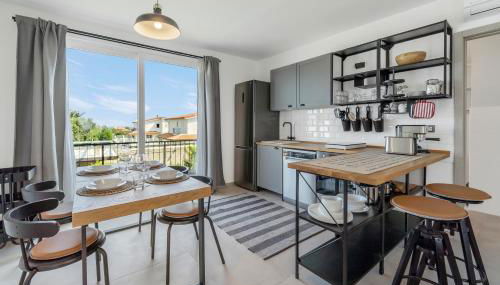 Esta casa de férias com ar condicionado tem 1 quarto, uma sala de estar, uma cozinha totalmente equipada com frigorífico e máquina de café, e 1 casa de banho com bidé e chuveiro. Toalhas e roupa de cama são providenciadas nesta casa de férias.
