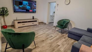 Esta casa de férias com ar condicionado tem 2 quartos, uma sala de estar, uma cozinha totalmente equipada com frigorífico e máquina de café, e 1 casa de banho com chuveiro e produtos de higiene pessoal gratuitos. Toalhas e roupa de cama são providenciadas nesta casa de férias.