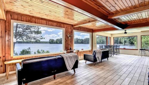Esta casa de férias dispõe de 7 quartos, 6 casas de banho, roupa de cama, toalhas, uma televisão de ecrã plano com canais por satélite, área de refeições, uma cozinha totalmente equipada e pátio com vista do lago.
