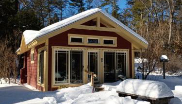 Apresentando um jardim, uma área de praia privada e um campo de ténis, Red Cabin & Sauna on Lake Monomonac apresenta acomodações em Rindge com acesso Wi-Fi gratuito e vista do rio.