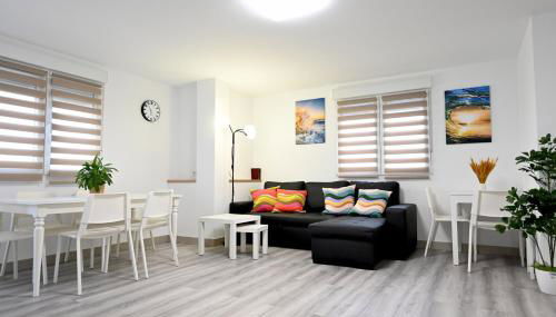 Este apartamento com ar condicionado tem 4 quartos, uma sala de estar, uma cozinha totalmente equipada com frigorífico e máquina de café, e 2 casas de banho com chuveiro e um secador de cabelo. Toalhas e roupa de cama são providenciadas neste apartamento.