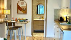 Este apartamento apresenta 1 quarto, uma sala de estar com uma televisão de ecrã plano, uma cozinha equipada e 1 casa de banho com chuveiro e um secador de cabelo.