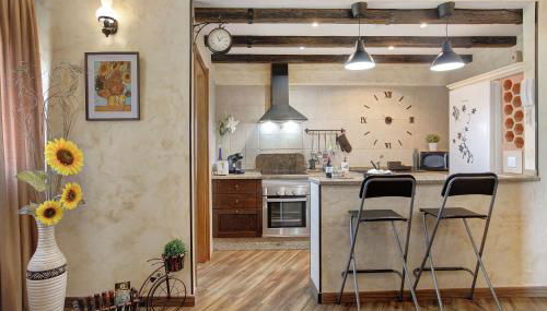 Este apartamento tem 2 quartos, uma sala de estar, uma cozinha totalmente equipada com forno e máquina de café, e 1 casa de banho com chuveiro e produtos de higiene pessoal gratuitos. Toalhas e roupa de cama são providenciadas neste apartamento.