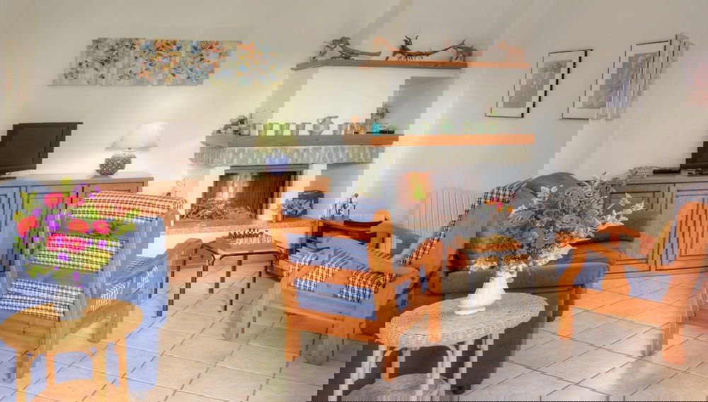 Esta casa de férias com mobília individualizada brinda quem aqui passa com várias mordomias, incluindo uma lareira.