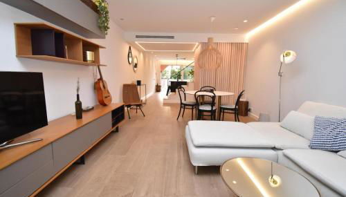 Este apartamento com ar condicionado tem 2 quartos, uma sala de estar, uma cozinha totalmente equipada com frigorífico e máquina de café, e 2 casas de banho com chuveiro e um secador de cabelo. Toalhas e roupa de cama são providenciadas neste apartamento.