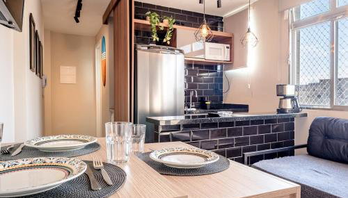 Frente Mar e Conforto | Ar cond, Vaga, Lava e Seca encontra-se em Santos, a 2 minutos a pé de Praia do Embaré, 2,2 km de Shopping Miramar e 6,2 km de Terminal Rodoviário de Santos.
