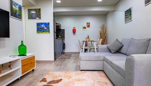 Este apartamento dispõe de 1 quarto, cozinha com um frigorífico e um forno, uma televisão de ecrã plano, uma área de estar e 1 casa de banho com banheira ou chuveiro. Toalhas e roupa de cama são providenciadas neste apartamento.