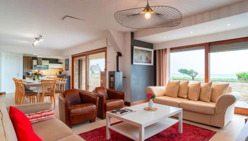 Apresentando vista do jardim, Villa St Jacques - Vue mer avec grand jardin fornece acomodações com varanda e chaleira, a cerca de 28 km de Marina de Vannes. Situado a alguns passos de Praia de Saint-Jacques, o alojamento dispõe de um jardim e estacionamento privado gratuito.