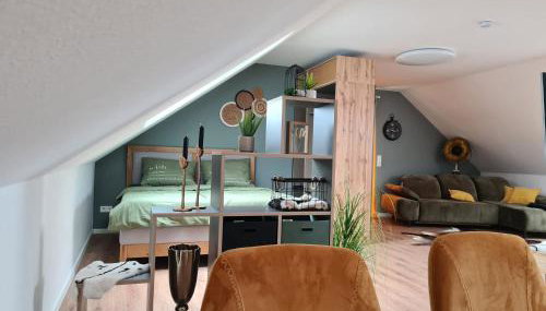 Apresentando vista do jardim, Studiowohnung für 2 DG dispõe de acomodações com varanda e máquina de café, a cerca de 18 km de Estação Ferroviária Central de Kaiserslautern. O alojamento com ar condicionado está a 18 km de Pfalztheater Kaiserslautern, e os hóspedes beneficiam de estacionamento privado disponível no local e acesso Wi-Fi gratuito.
