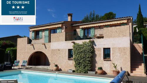 Apresentando uma piscina exterior sazonal, um jardim e um terraço, Villa provençale avec piscine, vue exceptionnelle apresenta acomodações em Seillans com acesso Wi-Fi gratuito e vista da cidade. O alojamento tem uma piscina privada, comodidades para churrascos e estacionamento privado gratuito.