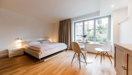 Este apartamento dispõe de 1 quarto, uma kitchenette com frigorífico e placa de fogão, e 1 casa de banho com banheira ou chuveiro, um secador de cabelo e máquina de lavar roupa. Toalhas e roupa de cama são providenciadas neste apartamento.