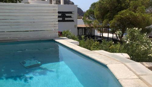 Apresentando vista da montanha, Villa in Kamares, Sifnos apresenta acomodações com varanda e máquina de café, a cerca de 14 km de Mosteiro de Chrisopigi. O alojamento com ar condicionado está a 4 minutos a pé de Praia de Kamares, e os hóspedes beneficiam de acesso Wi-Fi gratuito e estacionamento privado disponível no local.