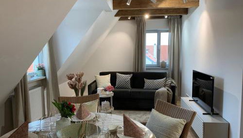 Este apartamento tem 1 quarto, uma sala de estar, uma cozinha totalmente equipada com frigorífico e máquina de café, e 1 casa de banho com chuveiro e um secador de cabelo. Toalhas e roupa de cama são providenciadas neste apartamento.