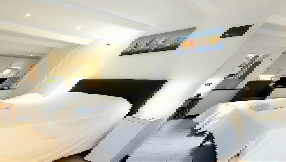 Sinta-se em casa neste apartamento com decoração personalizada, kitchenette, um frigorífico/congelador grande e um forno. O leque de entretenimento ao seu dispor inclui um televisor LCD de 60 cm com canais digitais. As comodidades incluem uma secretária e uma cafeteira/bule.