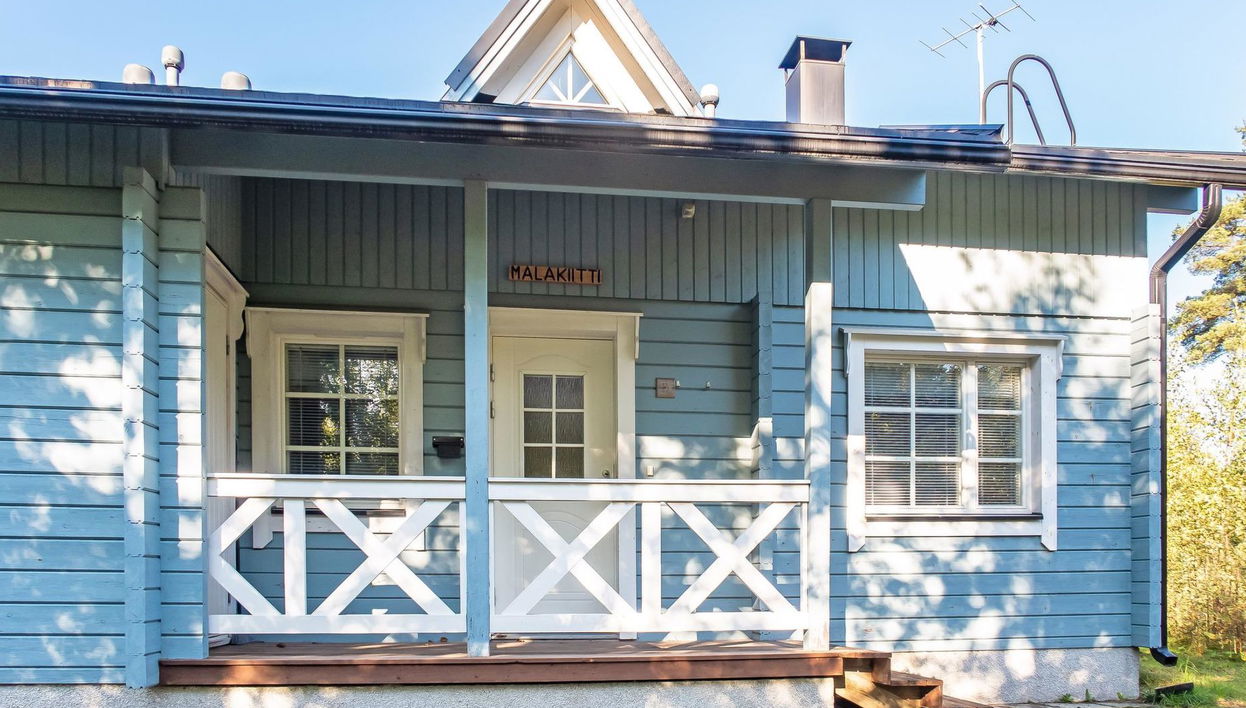 This apartment in log semi-detached house located in Vuokatti ski centre was completed in 2002. Combined living room & kitchen, two bedrooms, one with twin bed, the other with separate beds for two, sauna (electric heating), washroom and two toilets.