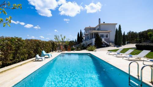 Villa Abelos localiza-se em Artemida e providencia um terraço com vista da cidade e do mar, assim como piscina exterior aberta todo o ano, centro de fitness e banheira de hidromassagem. O alojamento apresenta uma piscina privada, jardim, comodidades para churrascos, acesso Wi-Fi gratuito e estacionamento privado gratuito.