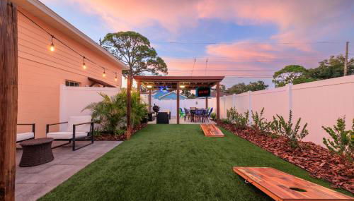 3BR - Beach & Trail - Bikes, Fire Pit, Mini-Golf localiza-se em St Petersburg, a cerca de 6,5 km de John's Pass e 6,8 km de Johns Pass and Village Boardwalk, e disponibiliza acomodações com acesso Wi-Fi gratuito, ar condicionado, um jardim e um terraço.