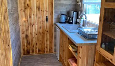 Esta casa de férias apresenta 1 quarto, kitchenette com um frigorífico e uma placa de fogão, uma televisão de ecrã plano, uma área de estar e 1 casa de banho dispondo de chuveiro.