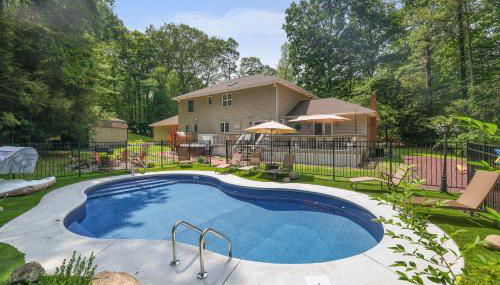 Heated Private Pool Hot Tub Game Room Sauna localiza-se em Stroudsburg, a cerca de 25 km de Delaware Water Gap National Recreation Area (parque nacional) e 7,2 km de Parque Aquático Great Wolf Lodge nas Montanhas Pocono, e disponibiliza acomodações com acesso Wi-Fi gratuito, ar condicionado e um jardim. O alojamento também apresenta uma piscina privada.