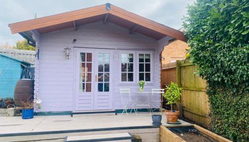 Apresentando um jardim e um terraço, Little Pink Cabin fornece acomodações em Church End com acesso Wi-Fi gratuito e vista do jardim.
