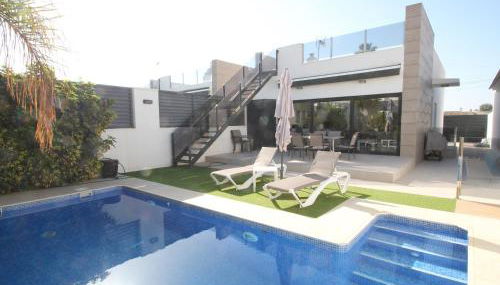 Designer Villa with pool localiza-se em Torrevieja, a cerca de 15 km de Campo de Golfe Las Colinas e 16 km de Villamartin Plaza, e disponibiliza acomodações com acesso Wi-Fi gratuito, ar condicionado, uma piscina exterior e um terraço.